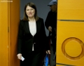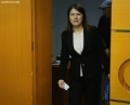 The judge at the Gjirokastra Court, Mirela Mishgjoni, during a session of the IQC, Independent Qualification Commission, which has started the hearing with her. Mishgjoni is going through the transitional re-evaluation process, otherwise known as the vetting process, which will investigate her professional skills and wealth.