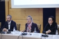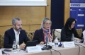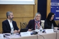 The State Commissioner of Elections, Ilirjan Celibashi, the Acting Chairperson of the OSCE Presence in Albania, Clarisse Pasztory and the Executive Director of KSHH, Erida Skendaj during a discussion table on the topic Elections 2025 - Electoral education. Finding and recommendations. The participants emphasized the importance of a broader strategy for informing voters
