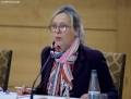 Acting Chairperson of the OSCE Presence in Albania, Clarisse Pasztory during a discussion table on the topic Elections 2025 - Electoral education. Finding and recommendations. The participants emphasized the importance of a broader strategy for informing voters