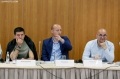 Journalists Tualant Koplikaj, Elton Qyno and Isa Myzyraj during a meeting organized by the Albanian Media Council and Reporters Without Borders, to discuss the challenges of journalism in Albania.