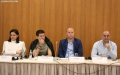 Journalists Ilda Londo, Dorian Matlija, Lorik Idrizi and Mimoza Kociu during a meeting organized by the Albanian Media Council and Reporters Without Borders, to discuss the challenges of journalism in Albania.