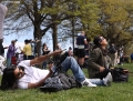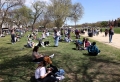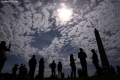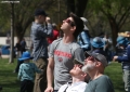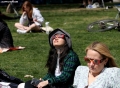 People gather on the National Mall and use special glasses to view the partial solar eclipse on April 8, 2024, in Washington, DC. A total solar eclipse swept across a narrow portion of the North American continent from Mexico’s Pacific coast to the Atlantic coast of Newfoundland, Canada. A partial solar eclipse was visible across the entire North American continent along with parts of Central America and Europe.