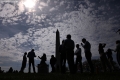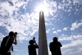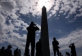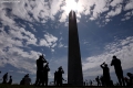 Photographers capture the solar eclipse near the base of the Washington Monument on the National Mall on April 08, 2024, in Washington, DC. A total solar eclipse swept across a narrow portion of the North American continent from Mexico’s Pacific coast to the Atlantic coast of Newfoundland, Canada. A partial solar eclipse was visible across the entire North American continent along with parts of Central America and Europe.