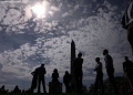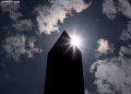 The Moon passes in front of the Sun, with the top of the Washington Monument in silhouette, during a partial solar eclipse in Washington, on April 8, 2024. A total solar eclipse swept across a narrow portion of the North American continent from Mexico’s Pacific coast to the Atlantic coast of Newfoundland, Canada. A partial solar eclipse was visible across the entire North American continent along with parts of Central America and Europe.