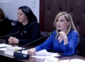 Deputy Jorida Tabaku speaking during a session of the parliamentary committee for Economy and Finance, where three draft laws were considered.