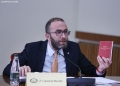 MP Gazment Bardhi speaking during the meeting of the Council for Regulation, Mandates and Immunity. During the session, the issue of the mandate of deputy and former minister Olta Xhacka was discussed.