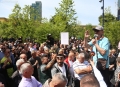 Citizens during a protest before the Tirana municipality. The protest was organized by the Alliance for the Protection of the Theater, an opposition MP and a supporter of Reestablishment. The protest was called after the arrest by order of SPAK of some former directors of this municipality, while the resignation of the mayor, Erion Veliaj, was also demanded.