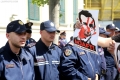 Deputies, Flamur Noka, Albana Vokshi and Ina Zhupa, citizens and police force during a protest in front of the Tirana municipality. The protest was organized by the Alliance for the Protection of the Theater, an opposition MP and a supporter of Reestablishment. The protest was called after the arrest by order of SPAK of some former directors of this municipality, while the resignation of the mayor, Erion Veliaj, was also demanded.