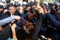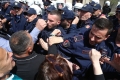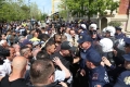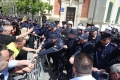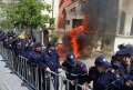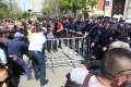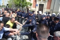 Citizens clashing with police forces during a protest in front of the municipality of Tirana.. The protest was organized by the Alliance for the Protection of the Theater, an opposition MP and a supporter of Reestablishment. The protest was called after the arrest by order of SPAK of some former directors of this municipality, while the resignation of the mayor, Erion Veliaj, was also demanded.