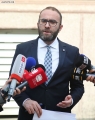 BARDHI SPEAKS TO JOURNALISTS - MP Gazment Bardhi speaking to journalists at the end of the meeting of the Conference of Speakers, while he declared that he will stick to the idea of ??a motion with a debate on the issue of Xibrake, where he claims that Prime Minister Rama's brother is involved. , Olsi Rama.