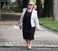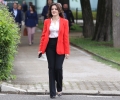 Minister of Health and Social Protection, Albana Kociu entering the premises of the parliament for a parliamentary session. On the agenda is the interview with the Minister of Defense, Niko Peleshi, called by MP Nasip Naco.