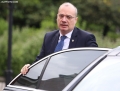 Minister of Defense, Niko Peleshi entering the premises of the parliament for a parliamentary session. On the agenda is the interview with the Minister of Defense, Niko Peleshi, called by MP Nasip Naco.