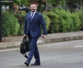 The Minister for Europe and Foreign Affairs, Igli Hasani entering the premises of the parliament for a parliamentary session. On the agenda is the interview with the Minister of Defense, Niko Peleshi, called by MP Nasip Naco.
