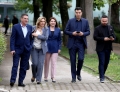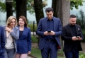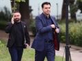 The chairman of the democratic party, Lulzim Basha, MPs Orjola Pampuri and Arbi Agalliu entering the premises of the parliament for a parliamentary session. On the agenda is the interview with the Minister of Defense, Niko Peleshi, called by MP Nasip Naco.