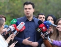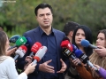 The chairman of the democratic party, Lulzim Basha speaking to journalists before entering the premises of the parliament for a parliamentary session. On the agenda is the interview with the Minister of Defense, Niko Peleshi, called by MP Nasip Naco.