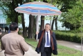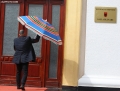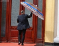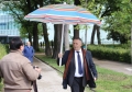 DOGJANI ENTERS THE PARLIAMENT - MP Asllan Dogjani entering the premises of the parliament for a parliamentary session, holding a beach umbrella in his hand. Dogjani has kept the umbrella, as a sign of irony to the statement of former minister Olta Xhacka.