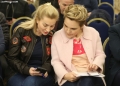 Monika Kryemadhi and Elona Guri before a meeting of the national leadership committee of the Freedom Party. During it, the Chairman Ilir Meta stated that there cannot be two members of the same family in the leadership.
