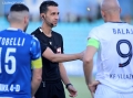 Referee Laver Alla, toss the coin, before the football match,, Teuta of Durres vs Vllaznia of Shkodra, 0-0, valid for the National Championship, played at the stadium Niko Dovana in Durres.
