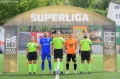 The referees of the match, Dardan Caka, Lumturije Muhadri, Drilon Rexhipi, the captain of the Balkans, Enea Kolici and the captain of Fc Drita, Faton Maloku, before the football match, Balkani vs Drita, 2-2, valid for the Kosovo Super League, played in the stadium of the city of Suhareka.