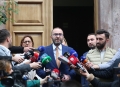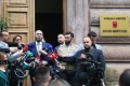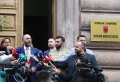 MP Gazment Bardhi speaking for journalists in front of the premises of the Constitutional Court. Bardhi has filed a lawsuit demanding the removal of the mandate of the SP deputy and former foreign minister, Olta Xhacka.