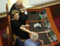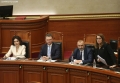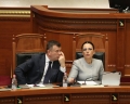 MPs Monika Kryemadhi and Petrit Vasili speaking during a parliamentary session. During the session, it was discussed about investments in tourism, the law on taxation of freelancers, investments in infrastructure, etc.