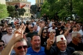 Klevis Balliu is raised by the protesters in front of the Tirana city hall. The protest was organized by the Alliance for the Protection of the Theater, an opposition MP and a supporter of Reestablishment. The protest was called after the arrest by order of SPAK of some former directors of this municipality, while the resignation of the mayor, Erion Veliaj, was also demanded.