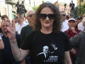 Argita Berisha and citizens during a protest in front of the Tirana municipality. The protest was organized by the Alliance for the Protection of the Theater, an opposition MP and a supporter of Reestablishment. The protest was called after the arrest by order of SPAK of some former directors of this municipality, while the resignation of the mayor, Erion Veliaj, was also demanded.