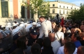 Citizens throw smokers to the police officials during a protest in front of the Tirana municipality. The protest was organized by the Alliance for the Protection of the Theater, an opposition MP and a supporter of Reestablishment. The protest was called after the arrest by order of SPAK of some former directors of this municipality, while the resignation of the mayor, Erion Veliaj, was also demanded.