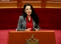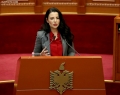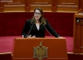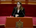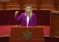 MP Ina Zhupa speaking during a parliamentary session. During the session, discussions were held with several ministers, while the request of MP Gazment Bardhi for a discussion with Prime Minister Edi Rama was rejected.