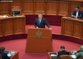 MP Ervin Salianji speaking during a parliamentary session. During the session, discussions were held with several ministers, while the request of MP Gazment Bardhi for a discussion with Prime Minister Edi Rama was rejected.