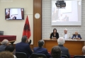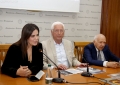 Neritan Ceka, Anisa Ymeri dhe Pirro Thomo during the ceremony honoring Theofan Popa (posthumously) with the Honor of the Academy award, for his contribution to the field of iconography and church heritage.