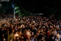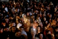Citizens lighting candles before the midnight mass, held on the occasion of the Orthodox Easter in the premises of the Orthodox Cathedral Resurrection of Christ in Tirana