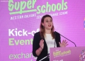 The Deputy Minister of Education and Sports, Nina Guga speaking during an event organized on the occasion of the launch of the second cycle of the Regional Program Superschools, under the motto Exchange for change. This program will provide the opportunity for 90 schools from Albania, Bosnia and Herzegovina, Kosovo, Montenegro, North Macedonia and Serbia to cooperate and implement joint activities through this scheme.