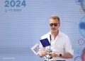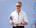 Journalist Blendi Salaj speaking at length during a fair organized in Tirana, on the occasion of Europe Day.