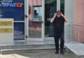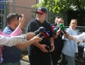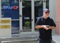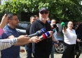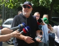 Journalist Baton Haxhiu leaving the premises of SPAK. Haxhiu stated that there was no summons for him, but that he had gone to interview a prosecutor.