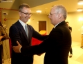 The Minister for Europe and Foreign Affairs, Igli Hasani and the Charge d'Affaires at the American Embassy in Tirana, David Wisner during a concert at the Academy of Arts on the occasion of Europe Day. The Youth Orchestra of the Western Balkans played melodies of classical European and Albanian masterpieces