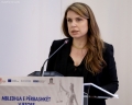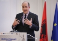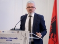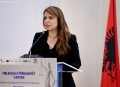 The Minister of Justice, Ulsi Manja speaking during a meeting of the High Prosecution College and the High Judicial College. This annual event coincides with May 10, the National Day of Justice.