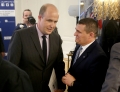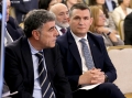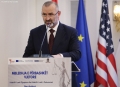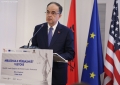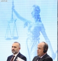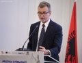 The Charge d'Affaires at the American Embassy in Tirana, David Wisner and the Minister of Justice, Ulsi Manja speaking during a meeting of the High Prosecutor's College and the High Judicial College. This annual event coincides with May 10, the National Day of Justice.
