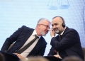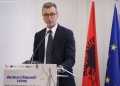 The Minister for Europe and Foreign Affairs, Igli Hasani and the head of SPAK, Altin Dumani speaking during a meeting of the High Prosecution College and the High Judicial College. This annual event coincides with May 10, the National Day of Justice.