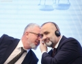 Head of the High Council of Prosecution, Alfred Balla and Minister of Justice, Ulsi Manja speaking during a meeting of the High Prosecution College and the High Judicial College. This annual event coincides with May 10, the National Day of Justice.