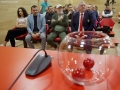 The president of Egnatia, Agim Demrozi, the president of Partizan, Gazmend Demi, and the president of the AFL, Armand Duka during the Final 4 draw, of the four teams of the Albanian championship that will compete to be declared champion. The semi-finals will be Egnatia - Vllaznia and Partizani - Skenderbeu, while the matches will be played at the Air Albania stadium.
