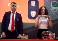 The Director of the Department of Competitions in the AFL, Marjus Sulejmani, during the Final 4 draw for the four teams of the Albanian championship that will compete to be declared champions. The semi-finals will be Egnatia - Vllaznia and Partizani - Skenderbeu, while the matches will be played at the Air Albania stadium.