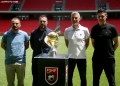 The championship trophy exposed after the Final 4 draw, to the four teams of the Albanian championship that will compete to be declared champion. The semi-finals will be Egnatia - Vllaznia and Partizani - Skenderbeu, while the matches will be played at the Air Albania stadium.