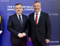 Albanian Minister of the Interior, Tualant Balla and Deputy Executive Director for Returns and Operations in the EU, Lars Gerdes before the Inter-ministerial Conference of Interior Ministers, on Cooperation for security and migratory flows through the Western Balkans, in the premises of the Palace of Congresses in Tirana. During the conference, the integrated border management of migratory flows was discussed, as well as the deepening of regional and wider cooperation in the fight against organized crime.