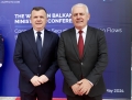 The Albanian Minister of the Interior, Tualant Balla, and the British Minister of State against illegal immigration, Michael Tomlinson before the Inter-ministerial Conference of Interior Ministers, on Cooperation for security and migratory flows through the Western Balkans, in the premises of the Palace of Congresses in Tirana. During the conference, the integrated border management of migratory flows was discussed, as well as the deepening of regional and wider cooperation in the fight against organized crime.