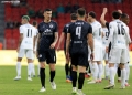 Kukesi players pose before the final football match, Kukesi - Egantia of Rrogozhina, 0-1, played at the Air Albania stadium. Egnatia was declared champion in the 72nd edition of the competition, winning it for the second time in its history.