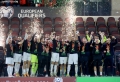 Egnatia players raising the cup and celebrating winning the Albanian Cup after the final football match, Kukesi - Egantia e Rrogozhine, 0-1, played at the Air Albania stadium. Egnatia was declared champion in the 72nd edition of the competition, winning it for the second time in its history.