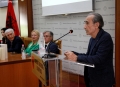 The head of the Academy of Sciences, Skender Gjinushi speaking during a ceremony organized in the premises of the Academy of Sciences, where researcher Ali Aliu received the Naim Frasheri award. The ceremony was organized by the Academy of Sciences and the National Book Center, on the occasion of the 90th anniversary of the birth of Ali.