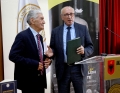 Researcher Ali Aliu and Timo Flloko during a ceremony organized in the premises of the Academy of Sciences, where researcher Ali Aliu received the Naim Frasheri award. The ceremony was organized by the Academy of Sciences and the National Book Center, on the occasion of the 90th anniversary of the birth of Ali.