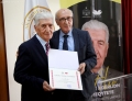 Researcher Ali Aliu receives the Naim Frasheri award during a ceremony organized in the premises of the Academy of Sciences. The ceremony was organized by the Academy of Sciences and the National Book Center, on the occasion of the 90th anniversary of the birth of Ali.